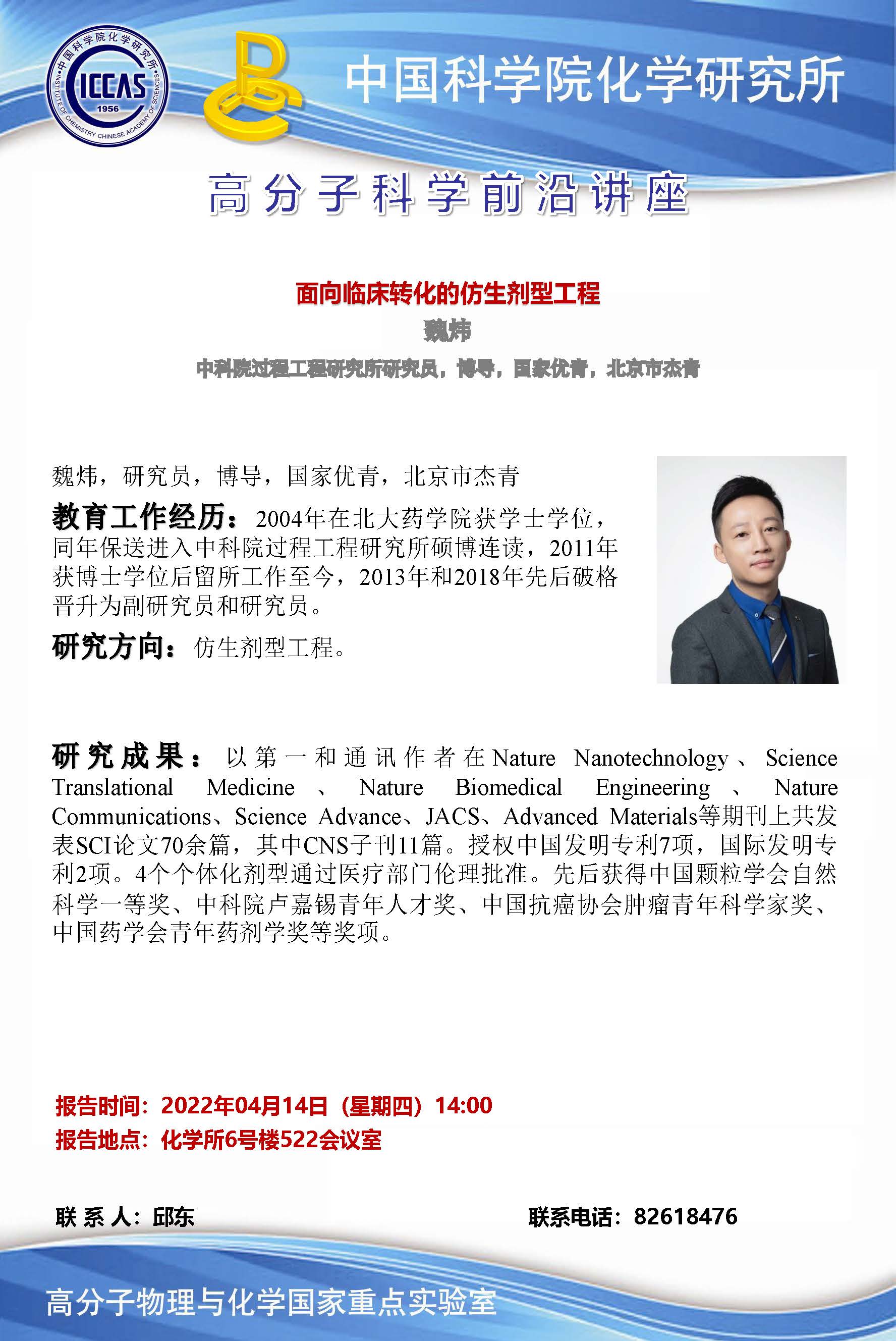 2022年4月14日邀请魏炜研究员进行高分子科学前沿讲座